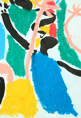 Le carnaval en lignes et couleurs, en mouvements et musiques, avec le pinceau à encre et les pastels à l'huile.