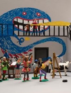 Cow-boy et Indien organisent une petite fête dans le hall de la maison de Cheval, tristement gris. Cow-boy à la machine à écrire, Indien au saxophone, Cheval au piano, et les copains à la guitare, dansent et dessinent pour mettre des couleurs sur les murs. Monsieur Gris ne supporte plus le bruit et met fin à la petite fête, mais est-il certain que ça ne se reproduira plus ?
