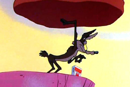 Vil Coyote utilise, entre autres, un rocher déshydraté pour tenter d’attraper Bip Bip. Il y verse une goutte d’eau pour le faire passer de la taille d’un caillou à celle d’un énorme bloc, mais le rocher grossit alors qu’il le soulève au-dessus de sa tête… et s’écrase sur lui.