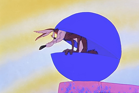 Vil Coyote tente d’attraper Bip Bip en s’enfermant dans une "balle en acier indestructible", qu’il est malheureusement incapable de diriger !