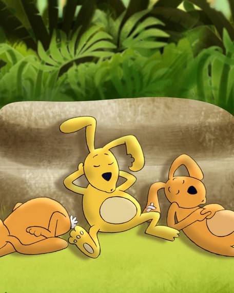 Trois lièvres entendent un bruit étrange et font courir une folle rumeur auprès de tous les animaux de la jungle.