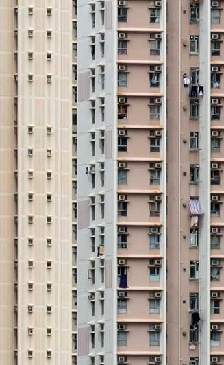 Ces immenses immeubles d'habitation caractéristiques de Hong Kong sont réinterprétés comme des rangées parallèles de pellicules de film.