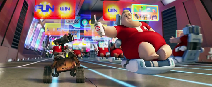 Et c’est là que WALL•E touche incroyablement juste : en nous montrant une société étouffée par la consommation de masse et la pollution, le film nous montre merveilleusement bien comment cette société en vient à perdre également son lien social. L’humanité présente dans le film navigue à bord du vaisseau Axiom, comme si la technologie était cet axiome, cette proposition considérée comme évidente sans démonstration. Évidemment, la technologie est un progrès et sert l’humanité ! À moins que…