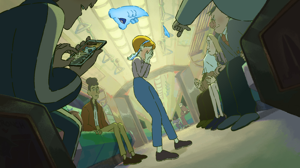 On commence avec un film d’une école que l’on ne présente plus : les Gobelins. Il s’agit de In Between, réalisé en 2012 par Alice Bissonnet, Aloyse Desoubries Binet, Sandrine Han Jin Kuang, Juliette Laurent et Sophie Markatatos. Ce court métrage raconte l’histoire d’une jeune fille constamment suivie par sa timidité, représentée sous la forme d’un crocodile. Un film qui parlera sans doute à tous les timides : ceux qui n’osent pas prendre la parole en public, décrocher le téléphone, ou encore aller à la rencontre d’inconnus. Au-delà d’une mise en scène qui retranscrit à merveille ces sensations, l’animation se distingue par sa fluidité et la richesse de son visuel, que ce soit dans le character design ou dans les décors. Ces derniers ne sont d’ailleurs pas sans rappeler l’univers d’un certain Disney… où l’on croise plus souvent des dalmatiens que des crocodiles.