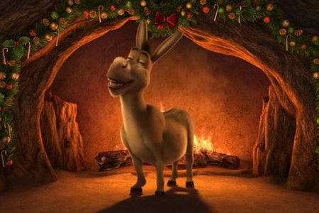 Le premier exemple se trouve dans un bonus de 30 minutes intitulé La Bûche de Shrek, inclus en complément du court métrage Le Noël Shrektaculaire de l'Âne, sorti en vidéofilm mais inédit en France.