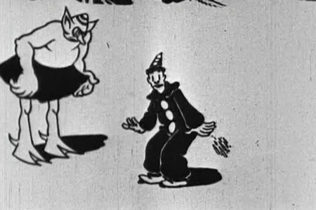 Max Fleischer, inventeur visionnaire, dépose en 1917 un brevet pour la rotoscopie, une technique révolutionnaire permettant de dessiner par-dessus des images filmées pour donner aux personnages animés des mouvements plus réalistes. Grâce à cette innovation, les Fleischer décrochent un contrat avec le studio Bray Productions. C’est ainsi qu’en 1918, leur petit clown sans nom fait sa première apparition dans une courte animation expérimentale. À partir de 1919, le personnage du clown est régulièrement mis en scène dans Out of the Inkwell en tant que segment d’un magazine filmé distribué par Paramount dans les salles de cinéma. Ces courts-métrages rencontrent vite le succès grâce à leur mélange inédit d’animation et de prises de vue réelles.