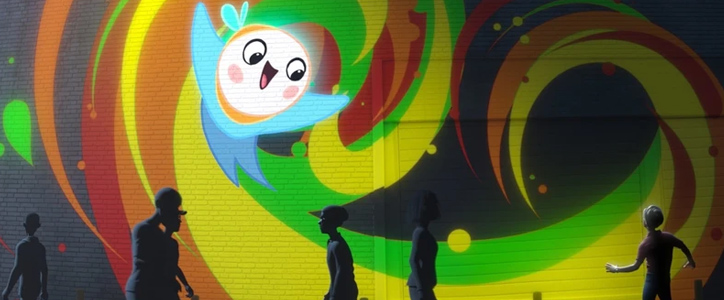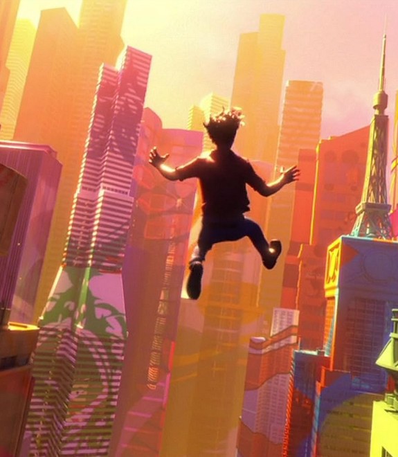 Le street art du centre ville prend vie et emmène un homme dans une promenade exaltante à travers les rues et les gratte-ciel...