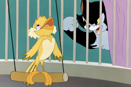 Figaro est ennuyé par les chants peu harmonieux de Frankie, le canari...