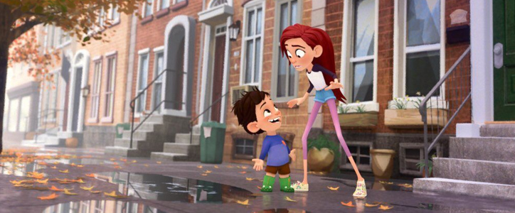 Flaques d’Eau de Zach Parrish, issu de la collection Short Circuit, illustre la rencontre entre l’imaginaire d’un enfant et la distraction de sa sœur absorbée par son téléphone. Le court brille par une animation stylisée et des effets d’eau particulièrement réussis, visuellement très soignés.