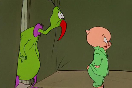 Chuck Jones clôt en 1955 sa trilogie d’horreur comique avec Kidnapping spatial, où Porky Pig et Grosminet campent dans le désert avant d’être enlevés par un alien de Jupiter. Fidèle au duo, Porky reste naïf face aux dangers que le chat perçoit, créant des situations à la fois tendues et humoristiques. L’animation soignée et le rythme bien dosé soutiennent un scénario simple mais efficace.