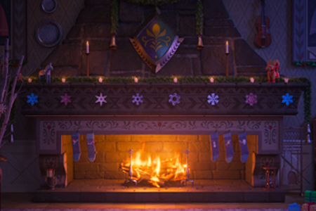 Pour vos vacances d'hiver, profitez de la douce chaleur de l'âtre du château d'Arendelle d'Elsa et d'Anna qui font brûler la bûche de Noël traditionnelle.