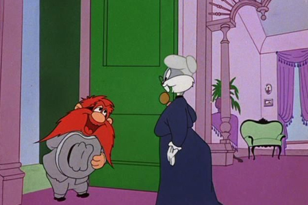 La Guerre des Galands repose sur un triangle comique efficace : Bugs Bunny, Sam le Pirate et Mémé se disputent un héritage colossal dans une suite de scènes de séduction, de jalousie et de trahison. L’humour repose ici davantage sur le jeu d’acteur et les déguisements que sur le slapstick pur. Bugs, maître du travestissement, ridiculise un Sam cupide et pathétique, prêt à tout pour mettre la main sur la fortune de Mémé. Si le rythme s’essouffle par moments, l’ensemble reste vif, porté par une animation expressive et quelques gags bien sentis. Un affrontement classique mais bien ficelé.