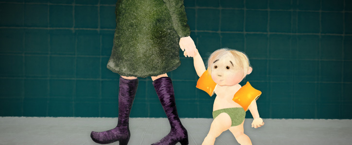 Un petit enfant prend sa première leçon de natation. A travers son regard neuf, l’univers de la piscine paraît étrange, voire inquiétant. Comment faire face à cette expérience nouvelle et peu ordinaire dans ce lieu peuplé de créatures à bonnet et lunettes de bain ? Cela s’appelle : grandir.