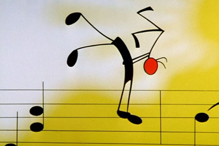 La partition de « Le Beau Danube bleu » de Johann Strauss est construite à partir de symboles musicaux en mouvement. Une note-chef d’orchestre brandissant une baguette tente de diriger ses congénères pour interpréter ce morceau, mais l’une des notes s’est enivrée après être passée par la partition de « Little Brown Jug ». Ivre, elle titube sur les portées du Danube bleu tandis que le chef d’orchestre se lance à sa poursuite.