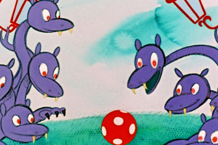 Le Ballon rouge, court-métrage d'animation hongrois de Tibor Csermák sorti en 1961, est un adorable petit récit enfantin qui brille également énormément par ses innovations techniques et artistiques. En effet, l'œuvre a été conçue avec une technique d'animation à la gouache, arborant une palette très colorée et des formes douces similaires à des dessins d'enfants (avec notamment des textures de craies grasses). On suit la petite histoire d'une fillette qui attend que sa mère rentre du shopping. Pour cela, elle se met à jouer avec son ballon rouge qui l'emmène voir des choses toutes plus amusantes les unes que les autres, le tout accompagné d'une bande-son tout aussi féerique (avec une pointe de réverbération qui rend l'ensemble nostalgique et apaisant).