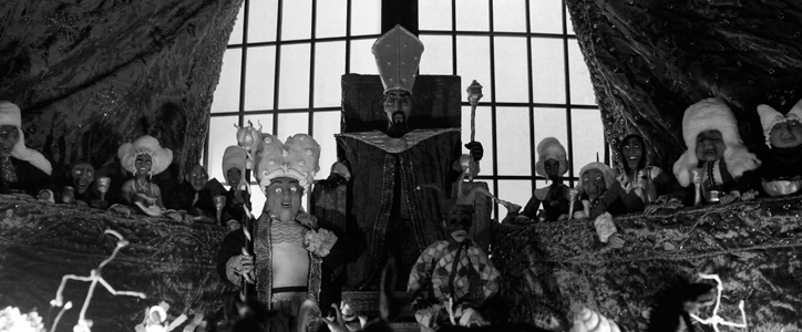 Ce film réalisé en stop-motion, avec une image majoritairement en noir et blanc, est saisissant. Une multitude de créatures fantastiques, largement inspirées de l’univers de l’artiste russe Ladislas Starevich, se réunissent pour divertir un roi cruel et sa cour décadente lors d’un banquet. Mais très vite, le dîner prend une tournure inattendue. Le film nous plonge dans un univers singulier rappelant fortement le cinéma impressionniste en noir et blanc, avec de forts contrastes, des plans percutants et une lumière tranchée.