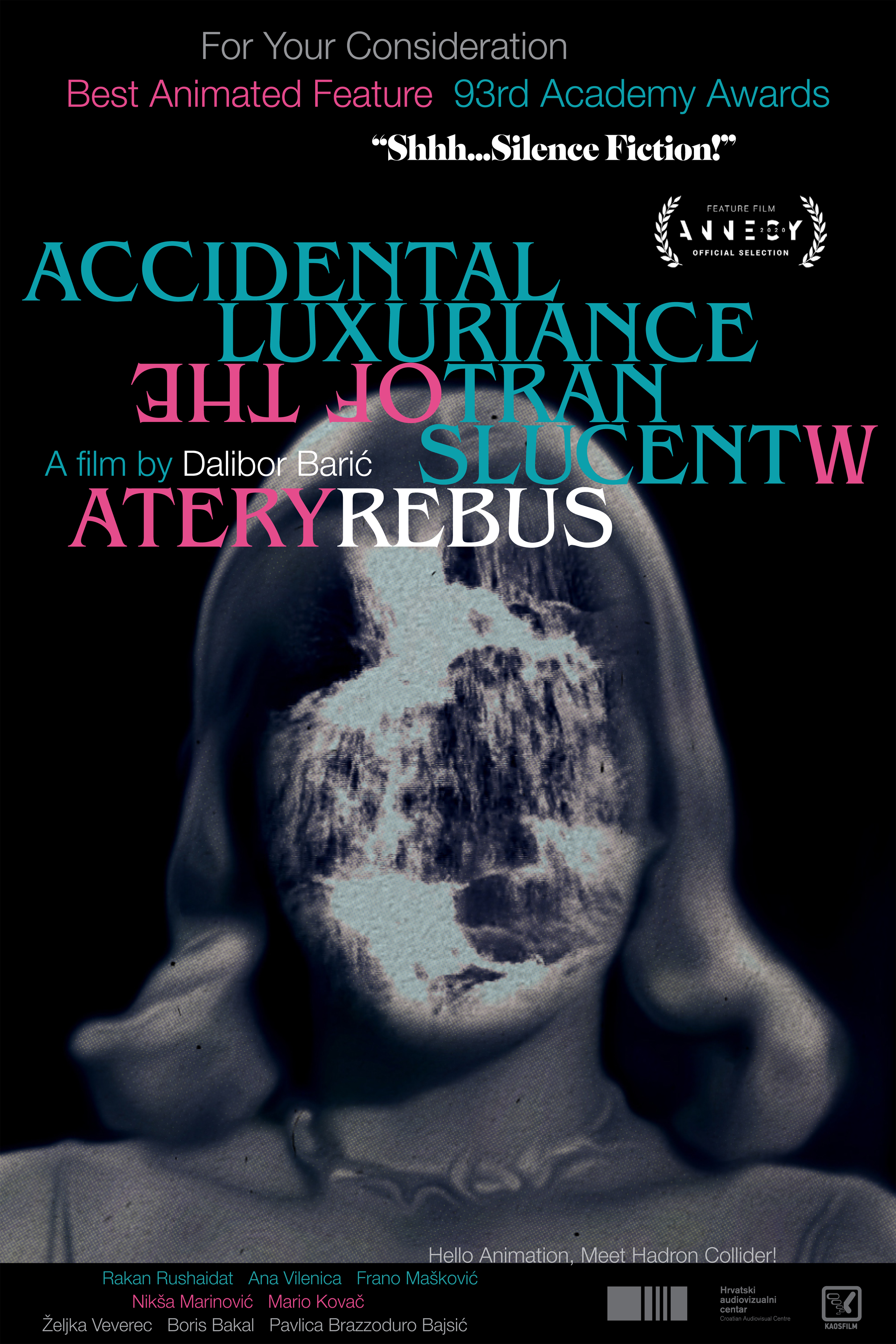 Luxuriance Accidentelle du Rébus Aqueux Translucide est un film d’animation expérimental croate sorti en 2020 et réalisé par Dalibor Barić, un artiste qui expérimente le recyclage de films de basse qualité, d’images de bande dessinée et de photographies, avec comme seul outil Photoshop. Après une centaine de courts-métrages, Barić est nommé aux Oscars 2020 pour ce premier long-métrage, qui mêle l’ensemble de ses techniques plastiques remarquables. Une histoire simple : un homme et une femme poursuivis par les autorités d’une société répressive.