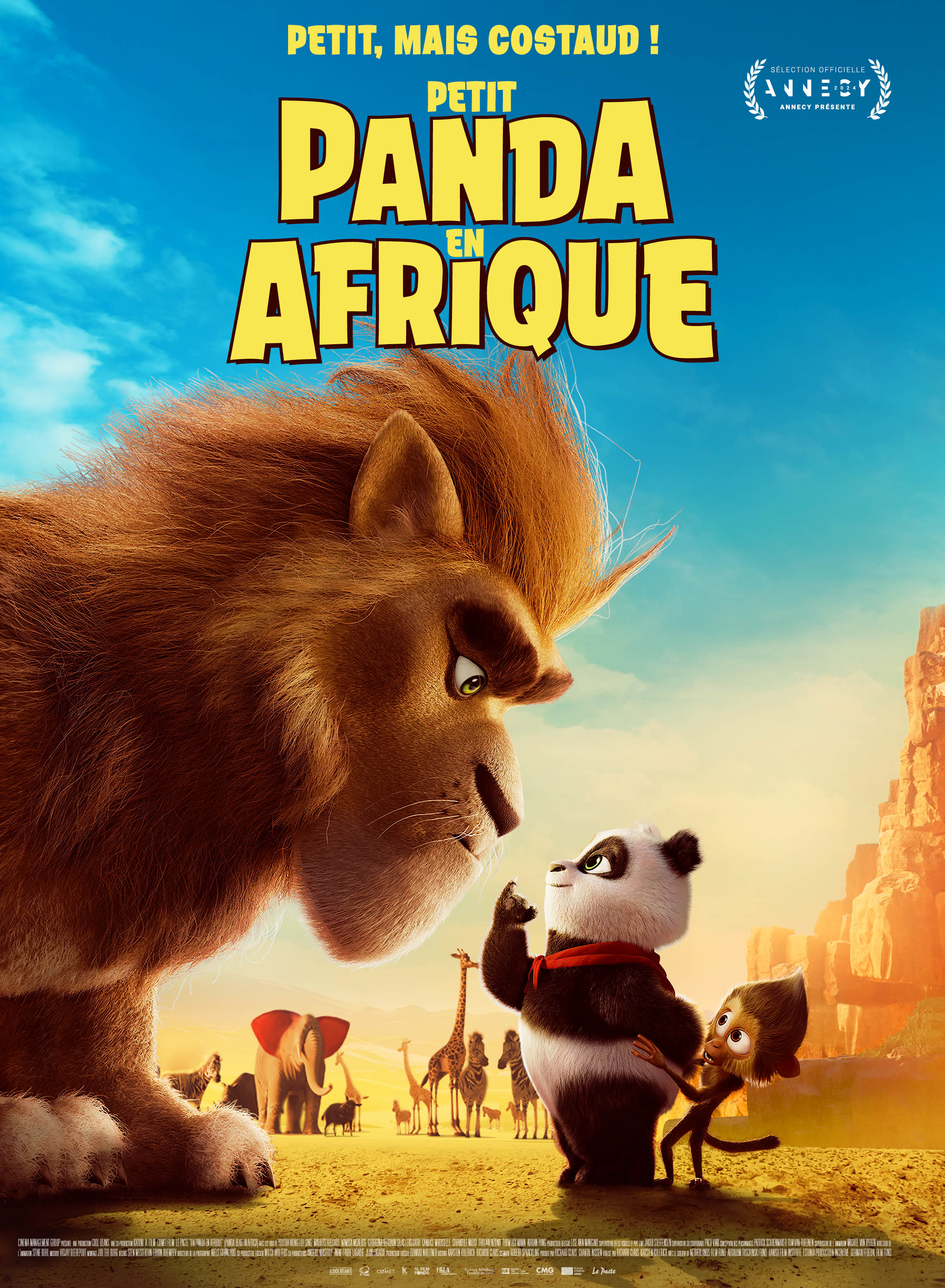 Sorti en 2024, Petit panda en Afrique est une aventure familiale réalisée par Richard Claus et Karsten Kiilerich. Le récit suit Ping, un jeune panda vivant en Chine, qui traverse continents et océans pour sauver son amie Jielong, une dragonne enlevée et offerte à un jeune roi lion en Afrique, déclenchant une suite de rencontres et de péripéties exotiques.