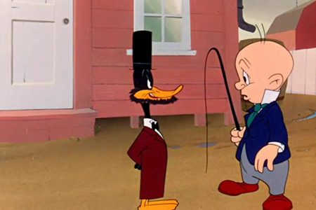 Après avoir atterri dans la ferme d’Elmer, Daffy le supplie de le prendre comme esclave afin d’éviter de se faire tirer dessus. Il finit par torturer Elmer avec ses pitreries.